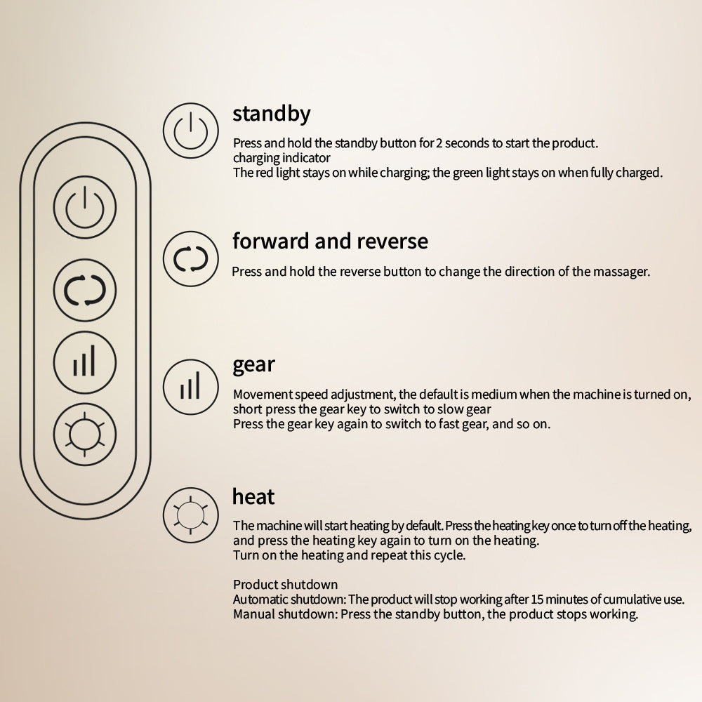 【Three Heat Levels, Constant Comfort】The constant temperature heat function is enabled by default and can be freely turned on or off. With three adjustable temperature levels (inferred from the gear key), it deeply penetrates to soothe soreness, providing warm care on cold days.